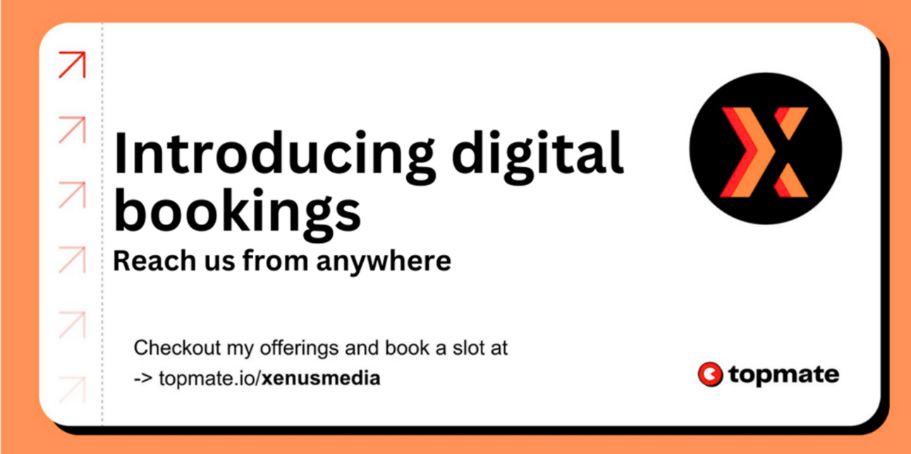 For every consumer, convenience is key. That’s why we’re introducing Digital Bookings at Xenus Media—designed to make your branding journey effortless and efficient. Whether you're a startup or an established business, securing our services has never been easier.
